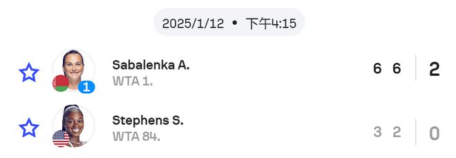 作为卫冕冠军,萨巴伦卡目标实现澳网的3连冠,首轮对手对阵同样拿过大满贯冠军的斯蒂芬斯,不过双方实力差距明显,萨巴伦卡6-3、6-2直落两盘轻松取胜,已在澳网豪取15连胜,下一轮对阵世界排名第52位的博萨斯。